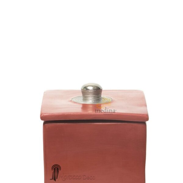 Les trois boîtes sont de couleur rouge brique, une couleur très vive qui rappelle les couleurs orientales du pays. Elles peuvent être posées séparément comme être placées ensemble dans votre salon, votre cuisine ou votre salle de bain. Leur magnifique aspect attribue à l’endroit où elles sont posées un charme inouï et un léger parfum oriental. Elles peuvent contenir des épices, des friandises, des chocolats, comme elles peuvent également servir de contenants pour vos produits cosmétiques.