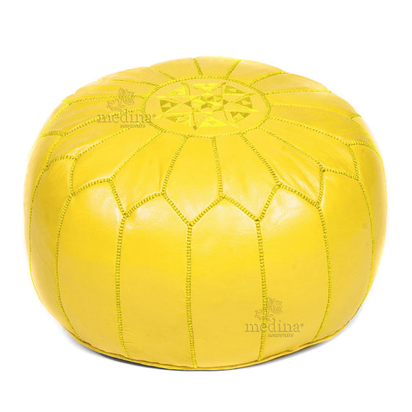 Pouf design cuir marocain jaune